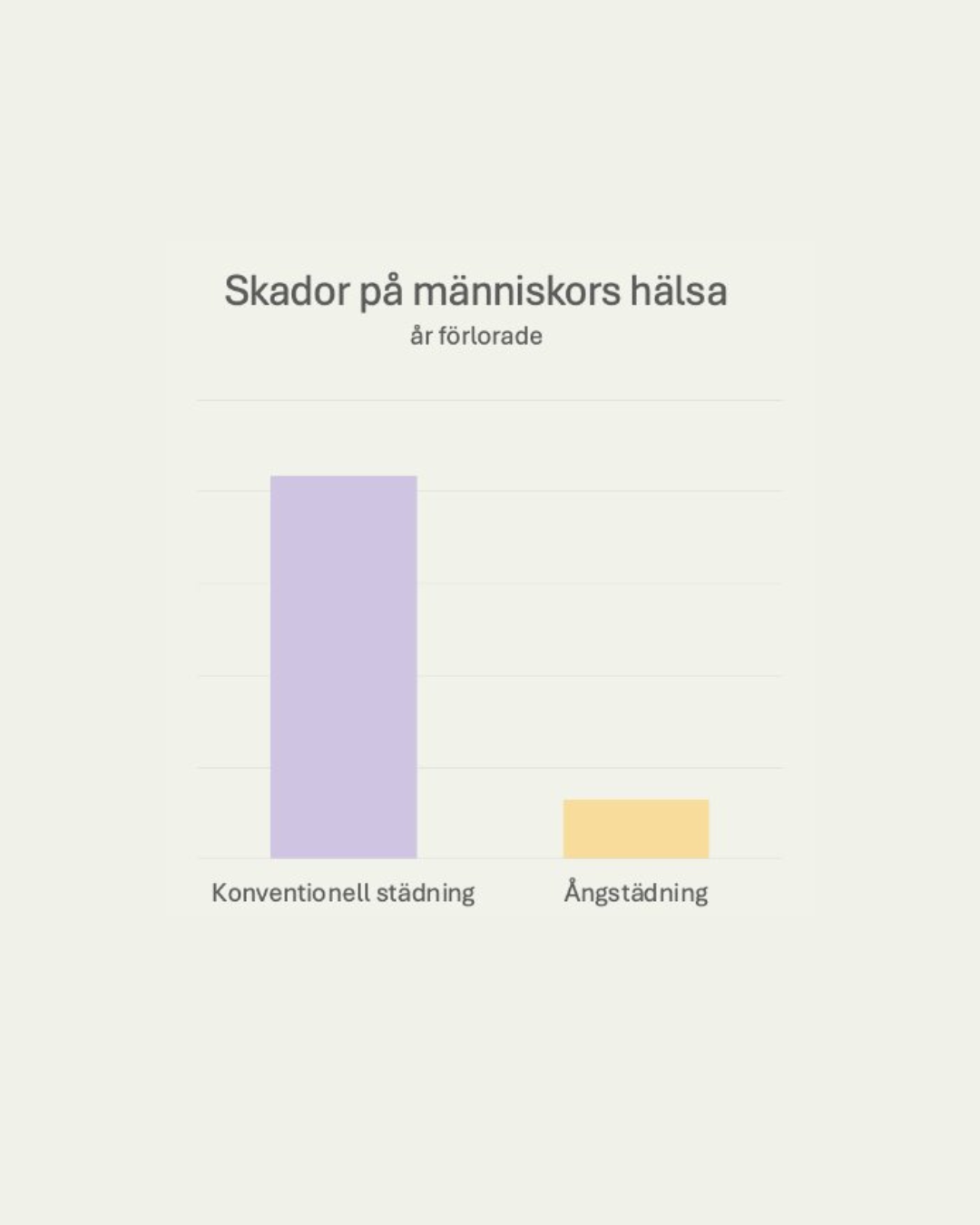 Studierna från LiU visade att konventionell städnings påverkan på människors hälsa var sex gånger större än städning med ångstädning.